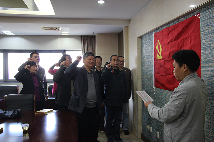 圖為全體黨員莊嚴(yán)宣誓,重溫入黨誓詞。