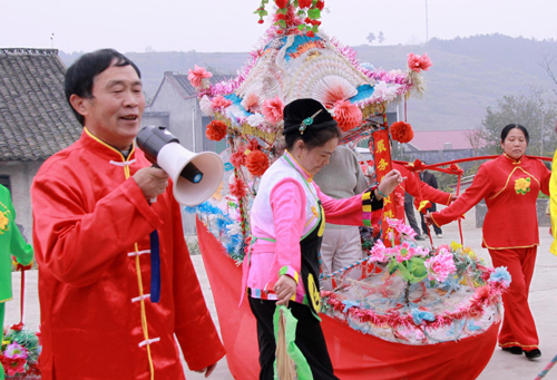 在節(jié)假日活動中他唱,在農(nóng)村精神文明建設(shè)中他唱,在新農(nóng)村建設(shè)中他唱。他將“十星級文明農(nóng)戶”評選標(biāo)準(zhǔn)編成花鼓船歌、快板、三字經(jīng)等進(jìn)行演唱宣傳。1996年10月27日,中央各大新聞單位組成陣容龐大的采訪團(tuán)到寶豐鎮(zhèn)采訪“十星級文明農(nóng)戶”創(chuàng)建活動,只見他撐桿搖船,放聲唱到:“天上星多月不明,地上坑多路不平,山上藤多樹難長,孩子多了難成人,一定少生和優(yōu)生”,形象生動宣傳了計劃生育國策的重要性。