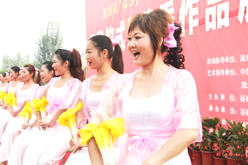 10月14日晚,首屆湖北藝術(shù)節(jié)“楚天群星獎(jiǎng)”曲藝決賽在武漢落幕,《尋夢(mèng)堰河村》榮獲“楚天群星作品獎(jiǎng)”。這是繼2000年谷城縣選送節(jié)目《放花?!帆@“楚天群星獎(jiǎng)”銅獎(jiǎng)后,在同類藝術(shù)盛會(huì)上的又一突破。