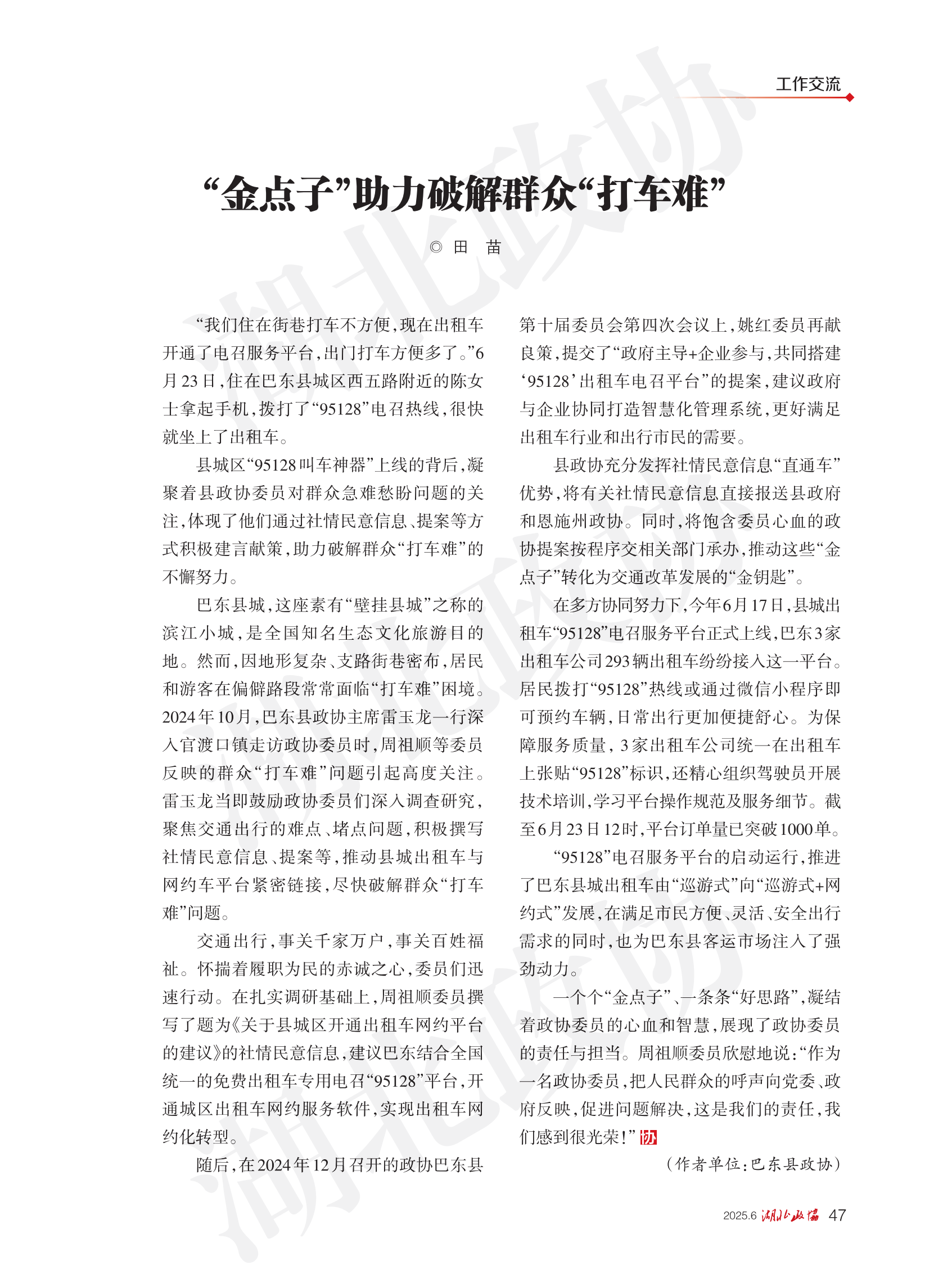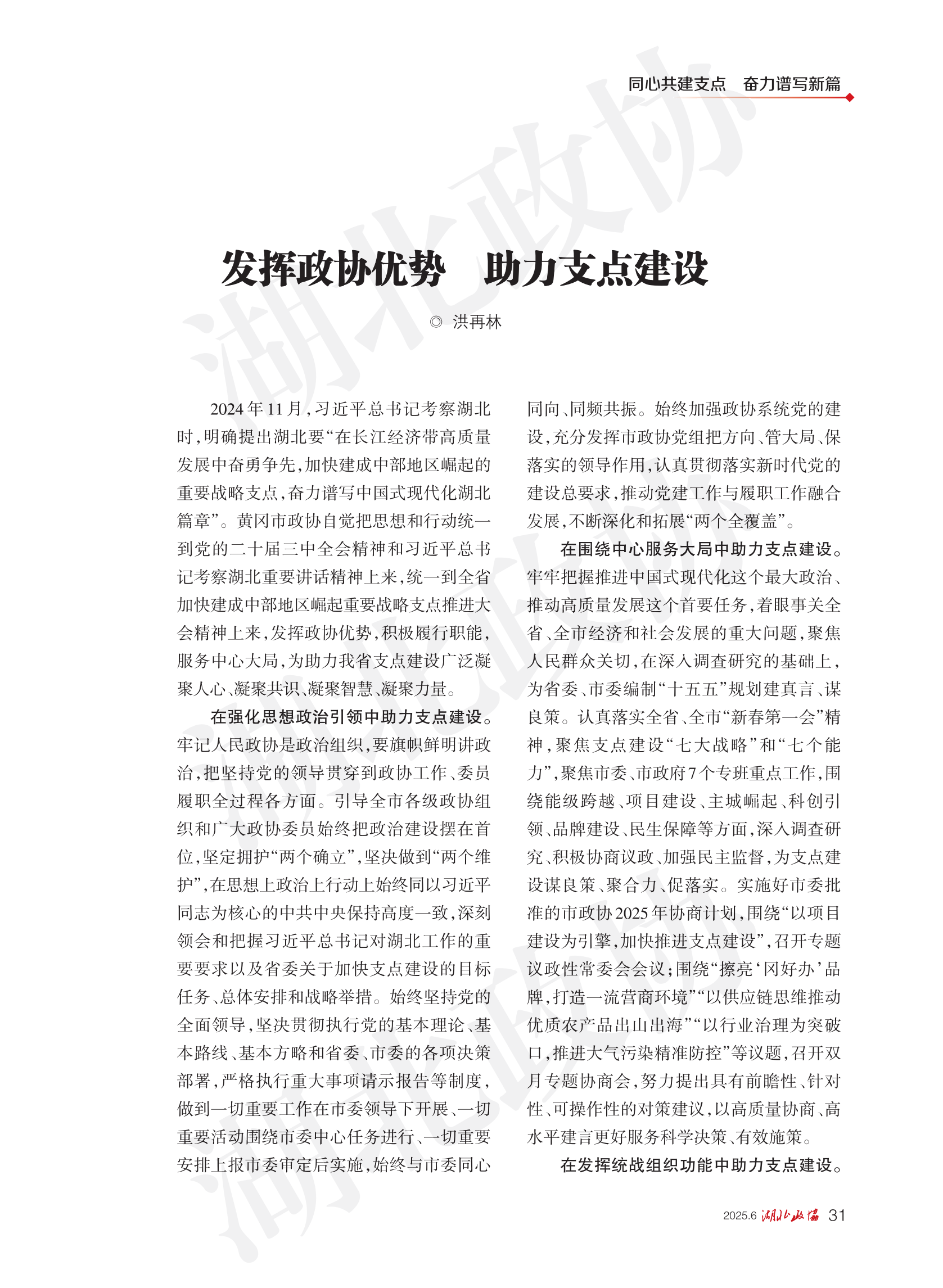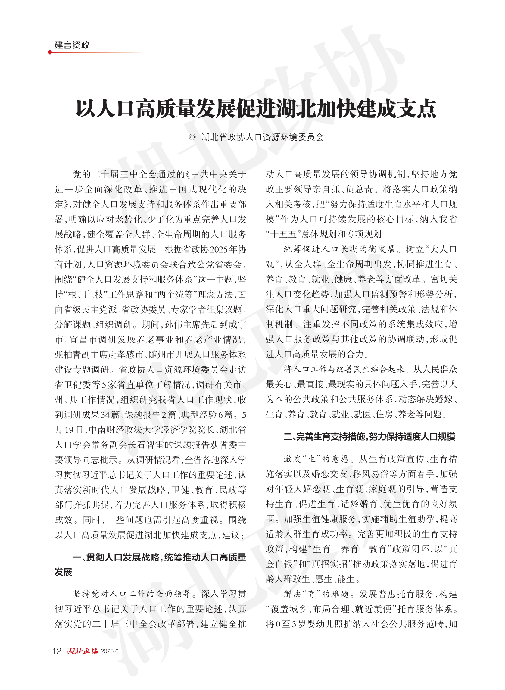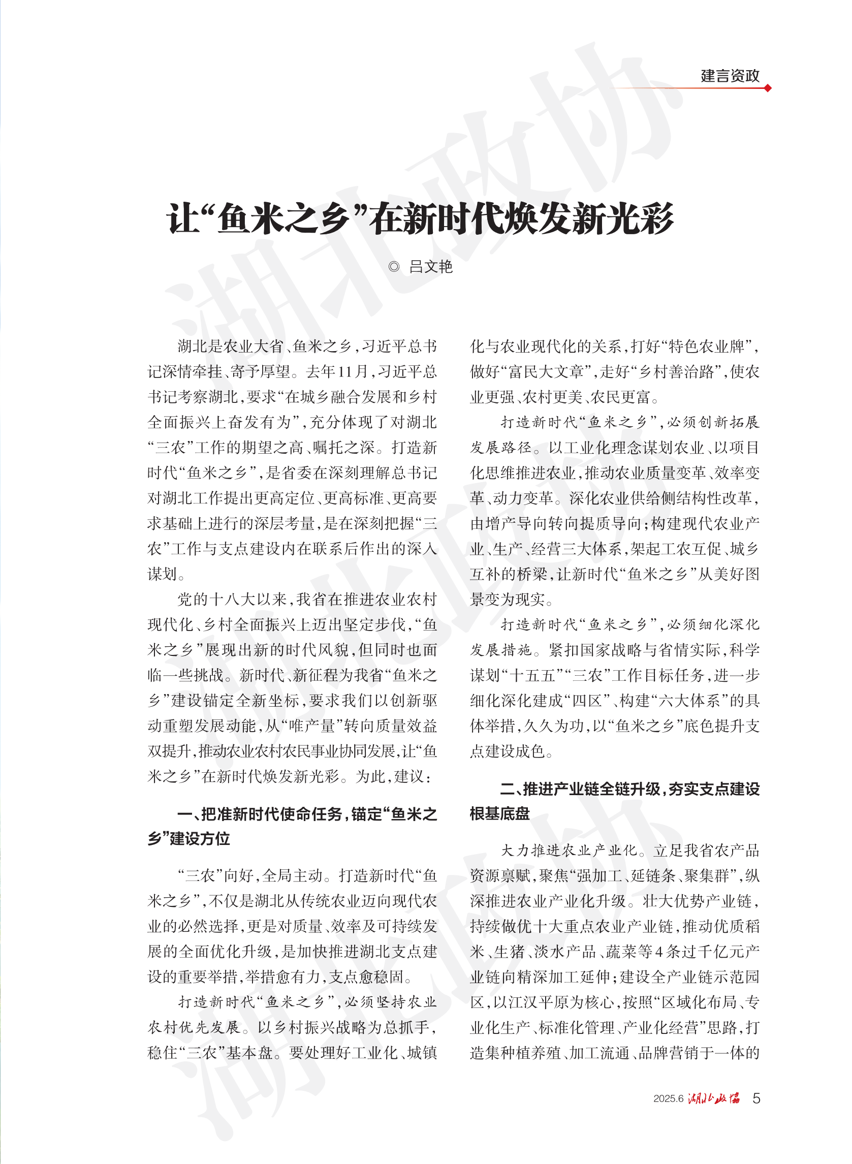 《湖北政協(xié)》2025年第6期