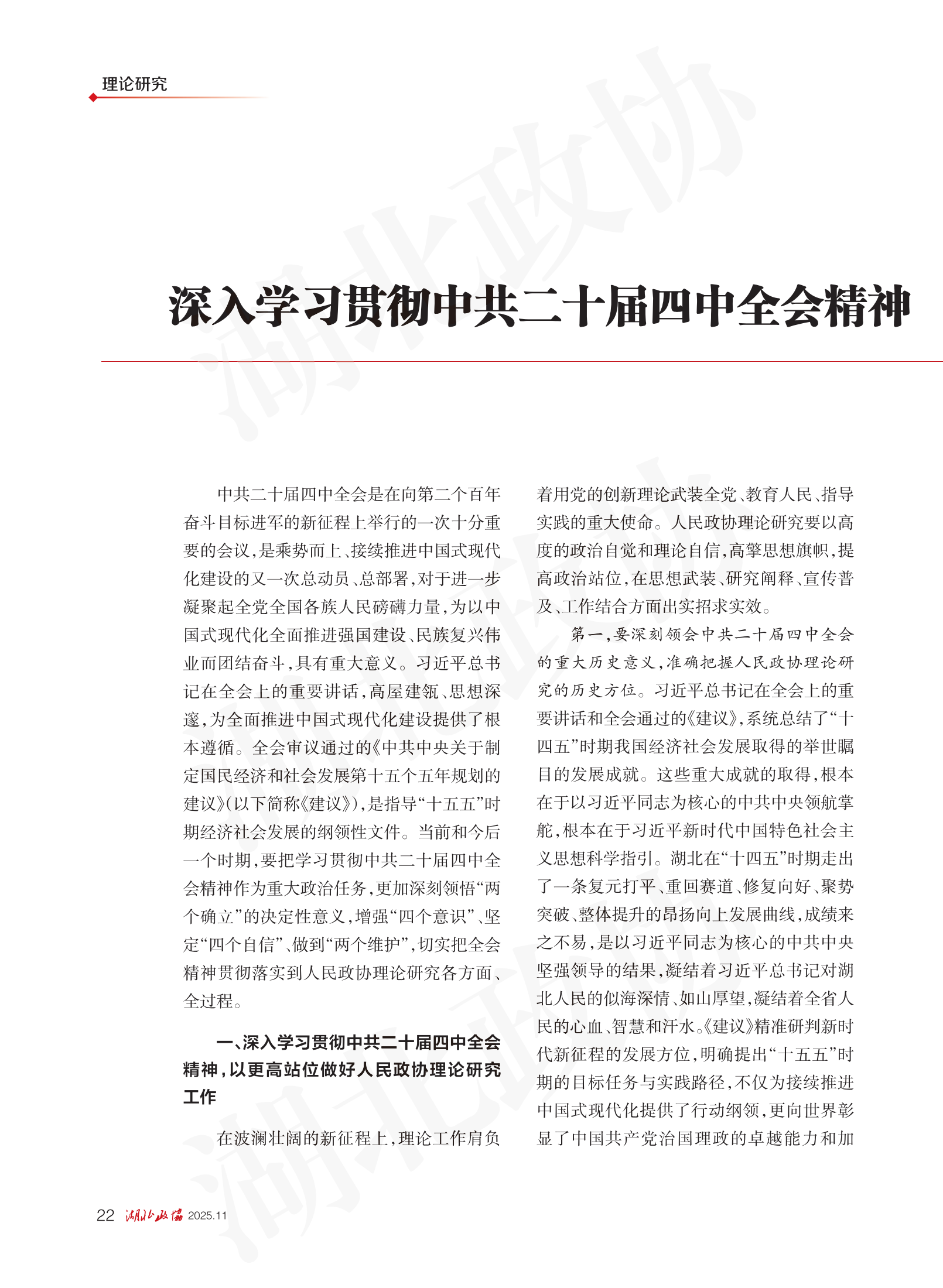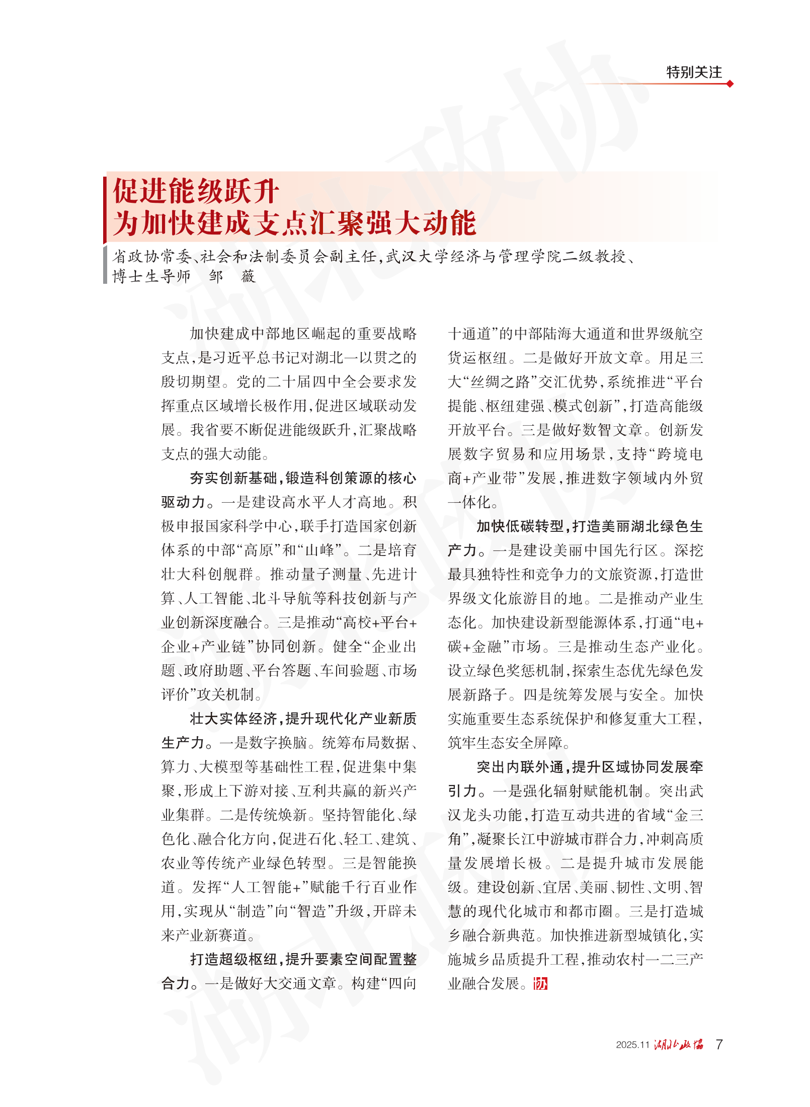 《湖北政協(xié)》2025年第11期